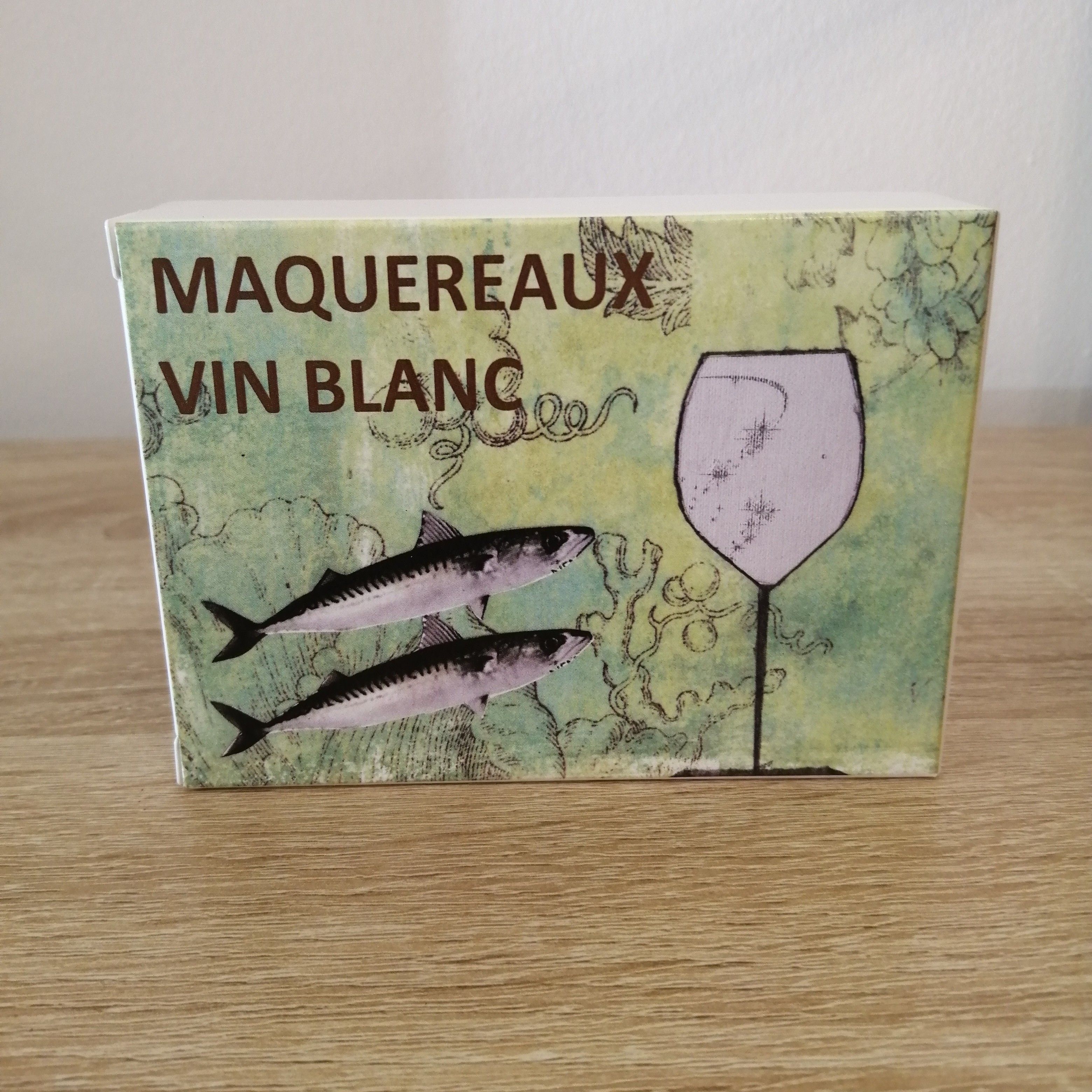 Filets de maquereaux (scomber japonicus ou scombrus), eau, vinaigre de vin bio, vin blanc bio (2 %), sel marin, carottes bio, oignons bio, épices bio.