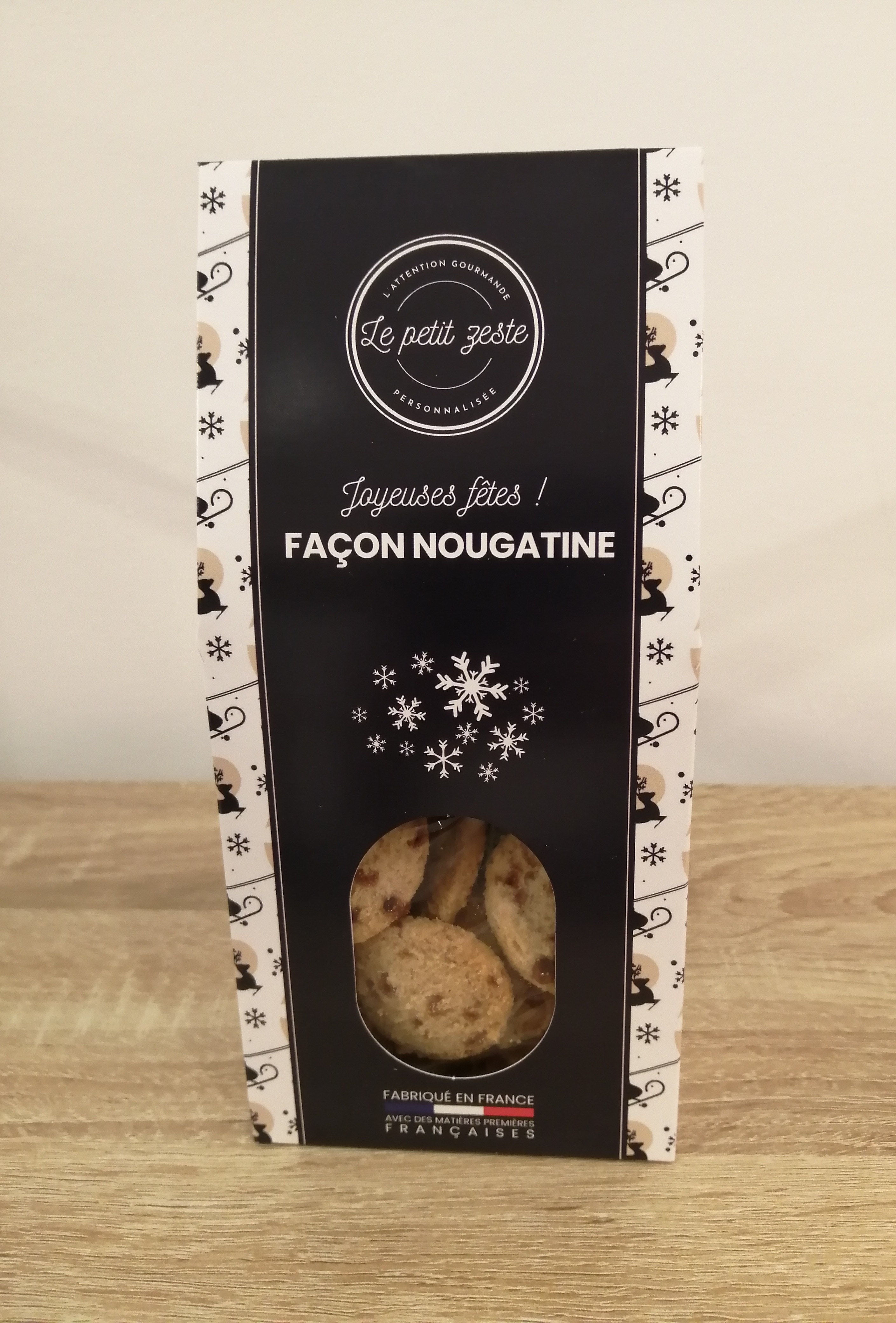 Le Petit Zeste est une marque née de deux épicuriens et ingénieurs agronomes souhaitant valoriser la qualité des produits de leur terroir. Fabriqués à Lunel dans l'Hérault, avec des matières premières locales ou d'origine France exclusivement. Ces sablés croquants ont des éclats de caramel et brisures noisettes façon nougatine.