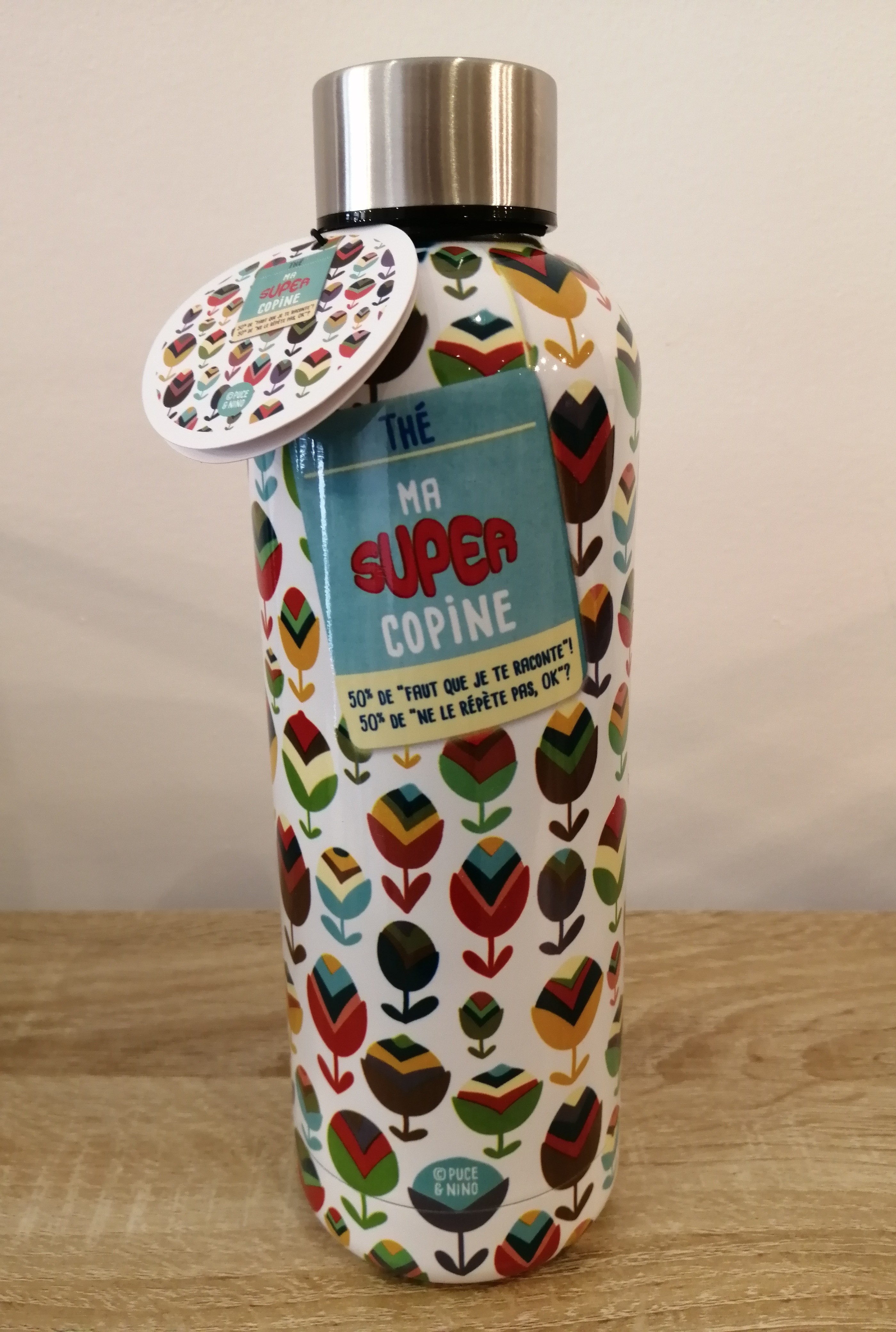 Jolie gourde isotherme pour conserver votre boisson chaude ou fraîche préférée. Design français par la marque Puce et Nino avec message humoristique.