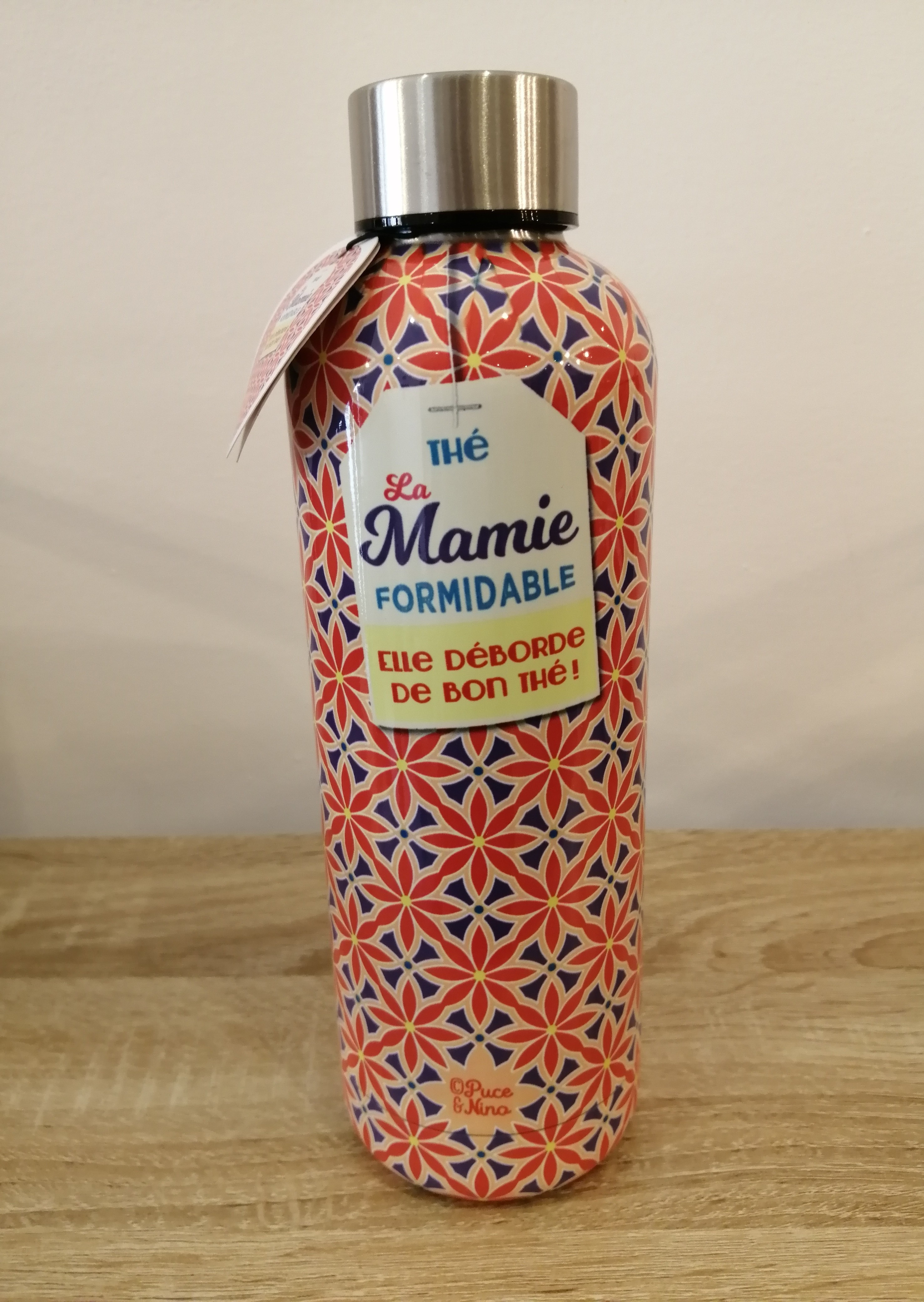 Jolie gourde isotherme pour conserver votre boisson chaude ou fraîche préférée. Design français par la marque Puce et Nino avec message humoristique.