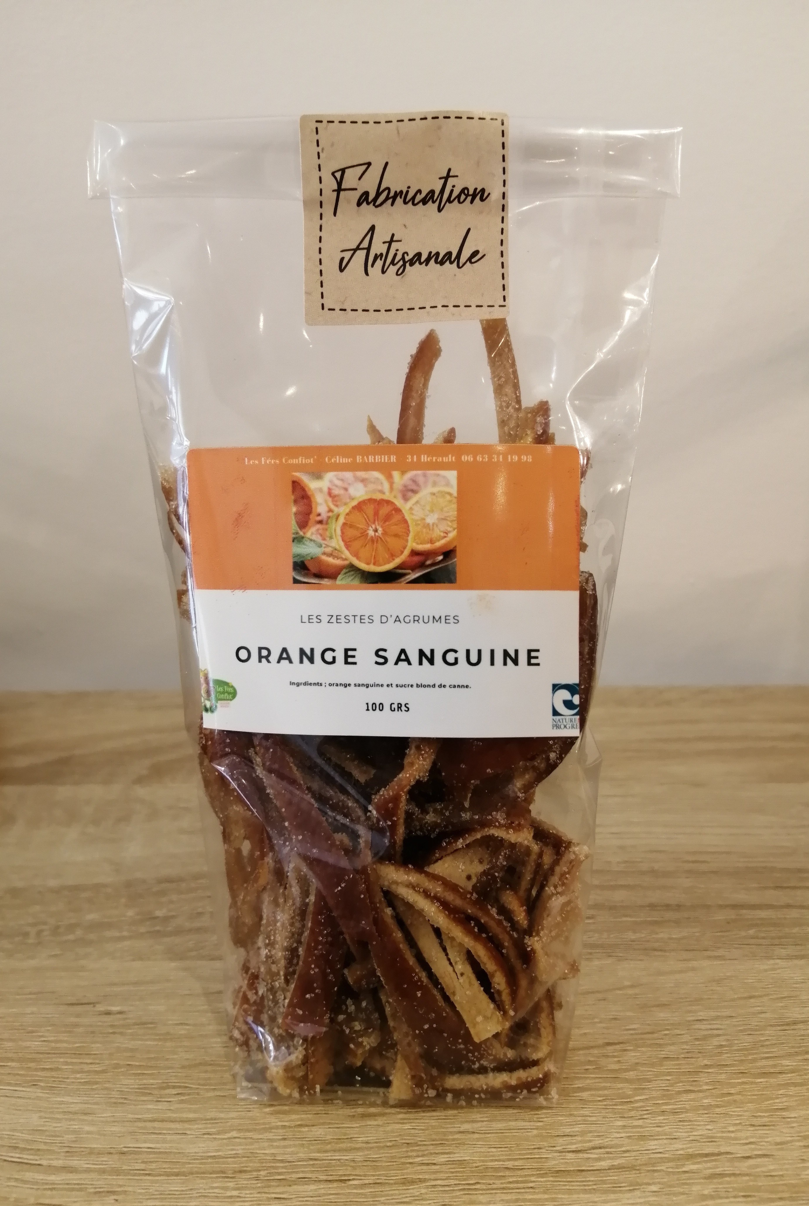 Céline confituriere des fées confiot vous propose une nouveauté de délicieux zestes d'agrumes confits au sucre blond de canne, à consommer seuls, dans vos desserts ou trempés dans du chocolat.