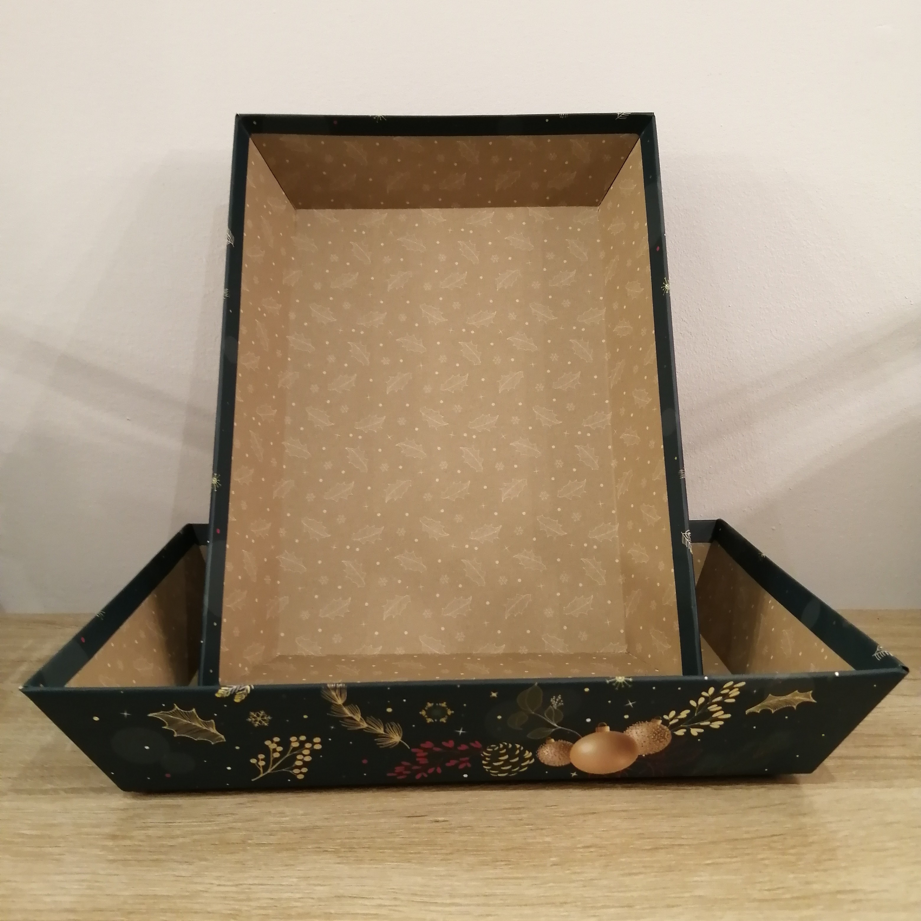 Corbeille rectangulaire motif Noël en carton idéale pour composer votre coffret cadeau.