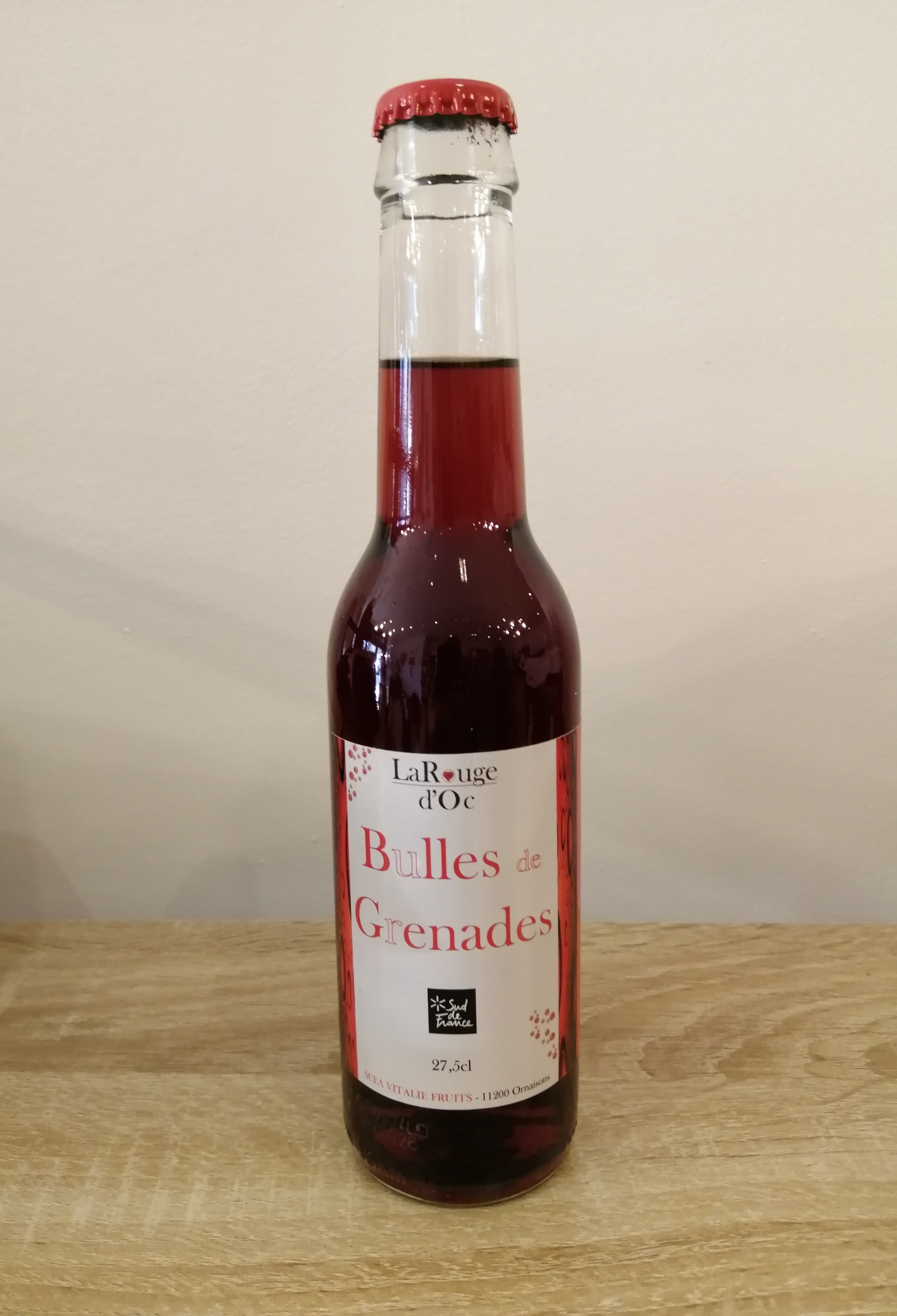 Jus de grenade bio de l'Aude, eau gazifiee.