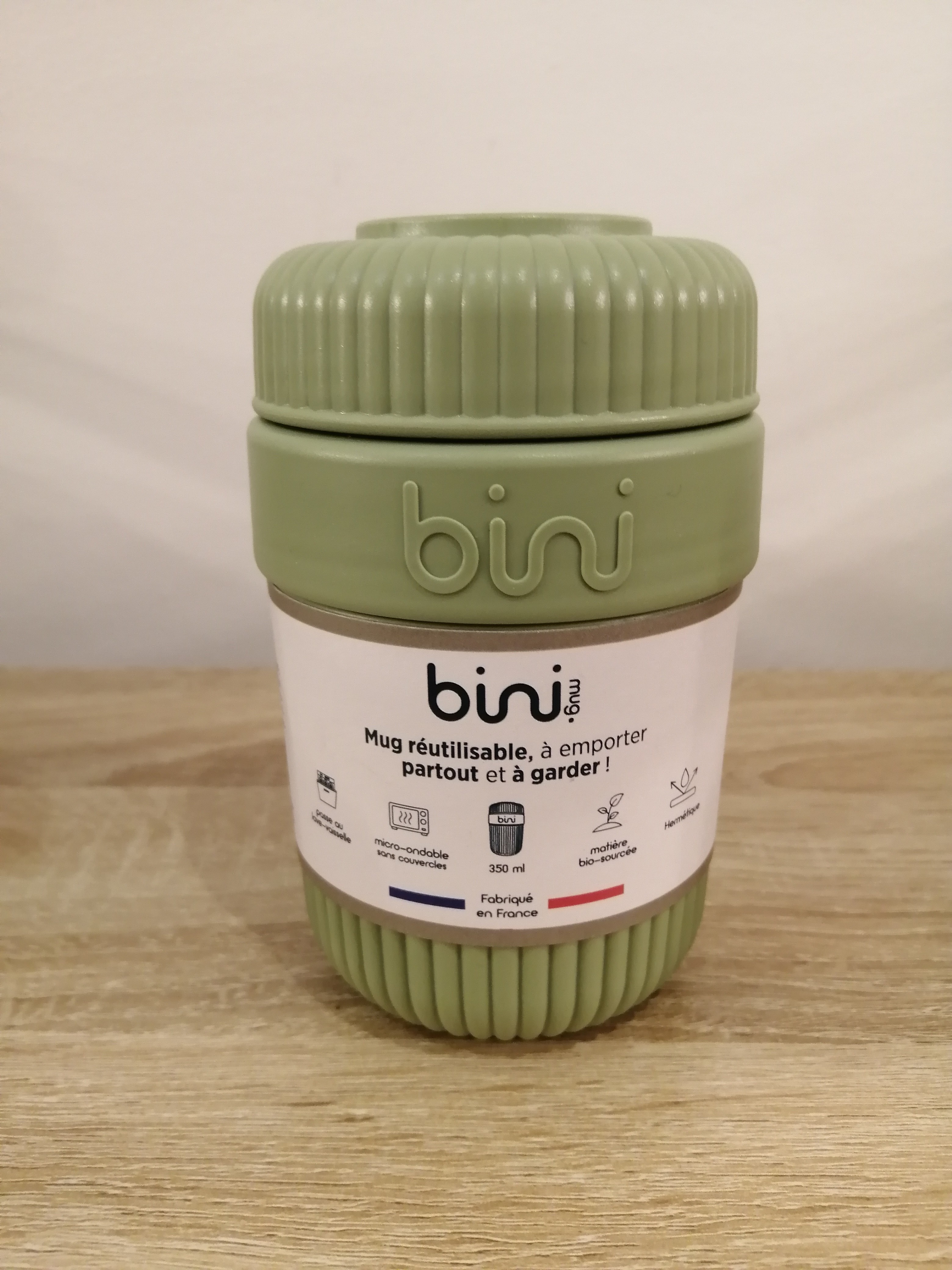 Mug réutilisable de la marque Bini 100 % made in France, fabriqué à partir de matières premières bio-sourcées (bio composite circulaire composé de 40 % de déchets de fibres de bois issue d'une scierie et d'un polymère bio-sourcé issu d'huiles recyclées), il passe au lave vaisselle, léger il est ideal en randonnée, en pique-nique, à la plage ou au quotidien avec votre lunch box, vous pourrez l'associer au kit de couverts Design Margaux Keller.