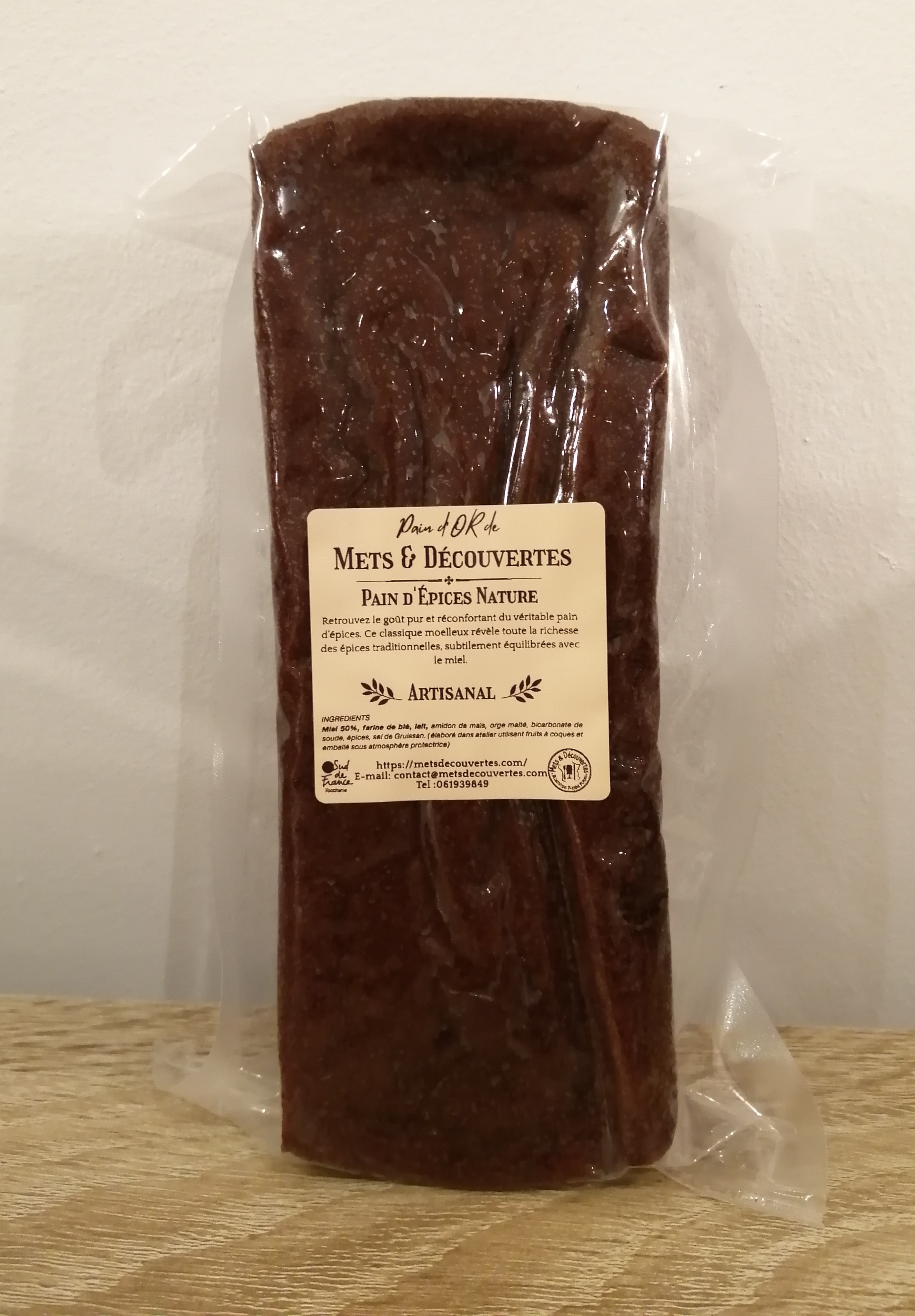 Grâce à Mets et découvertes vous retrouvez le goût pur et réconfortant du véritable pain d'épices très moelleux et généreux en miel.