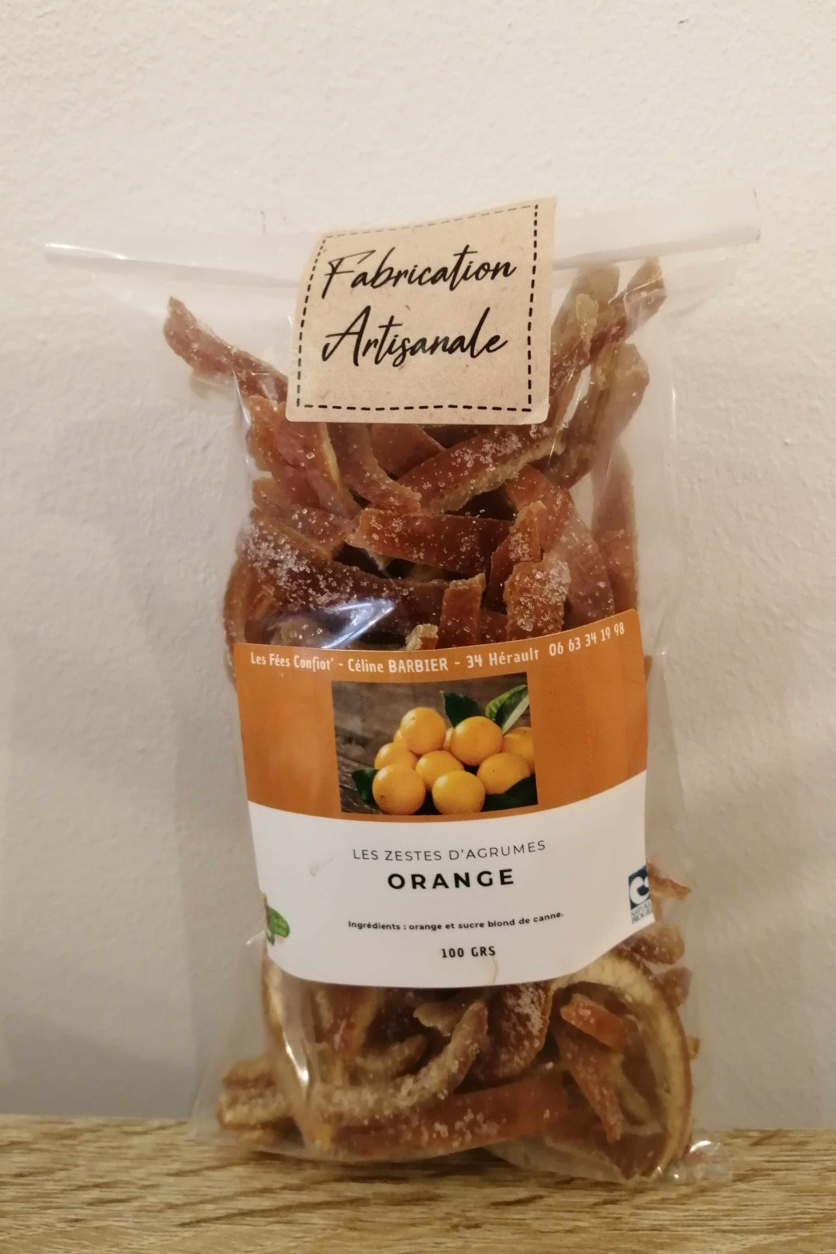 Céline confituriere des fées confiot vous propose une nouveauté de délicieux zestes d'agrumes confits au sucre blond de canne, à consommer seuls, dans vos desserts ou trempés dans du chocolat.