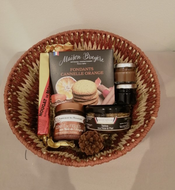 Coffret 6 produits sucrés salés dans jolie corbeille